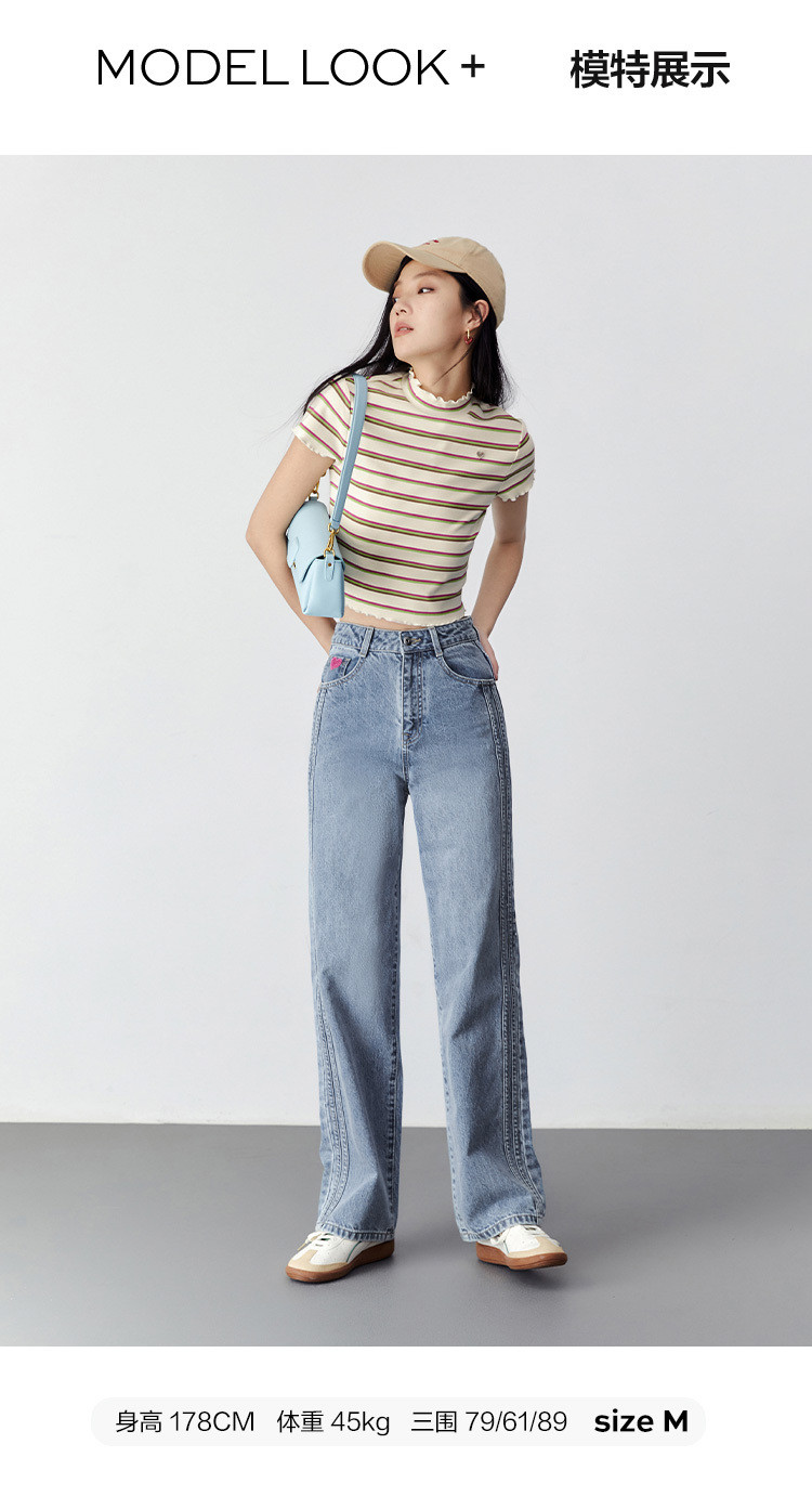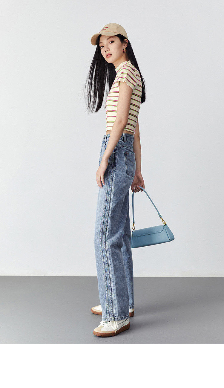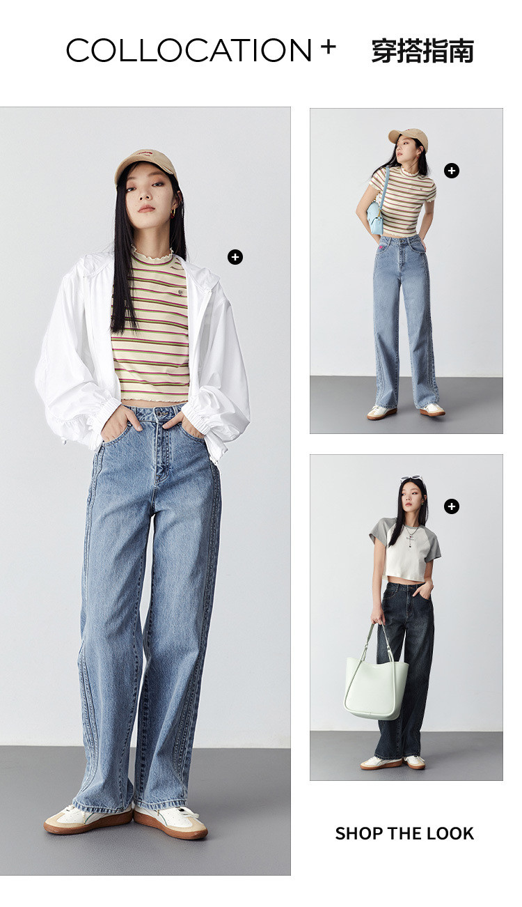 高腰阔腿牛仔裤女2023春夏新款宽松复古窄版直筒牛仔裤