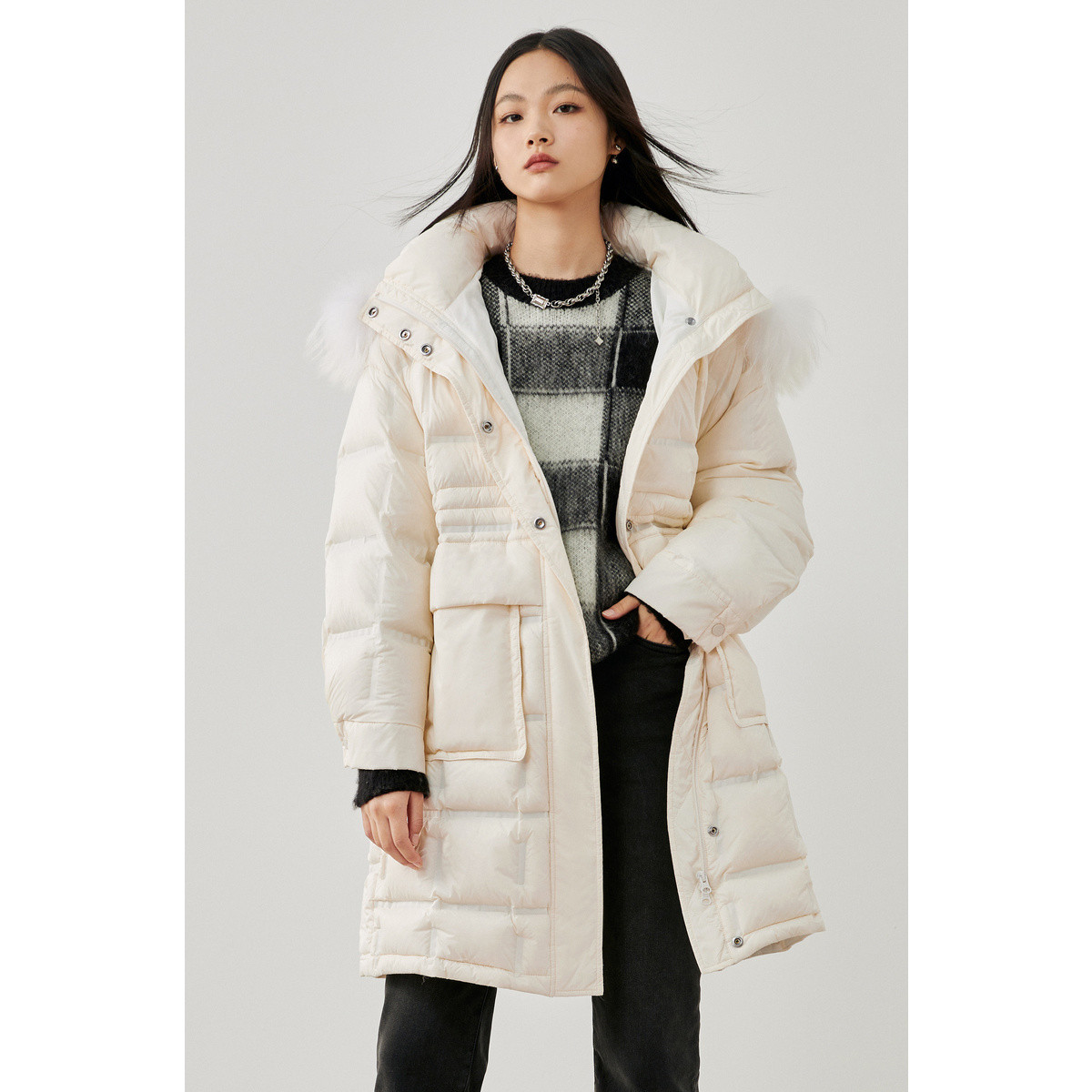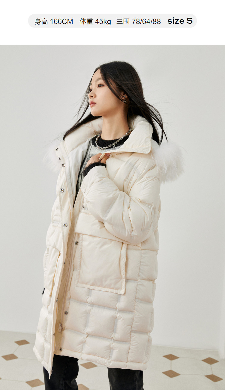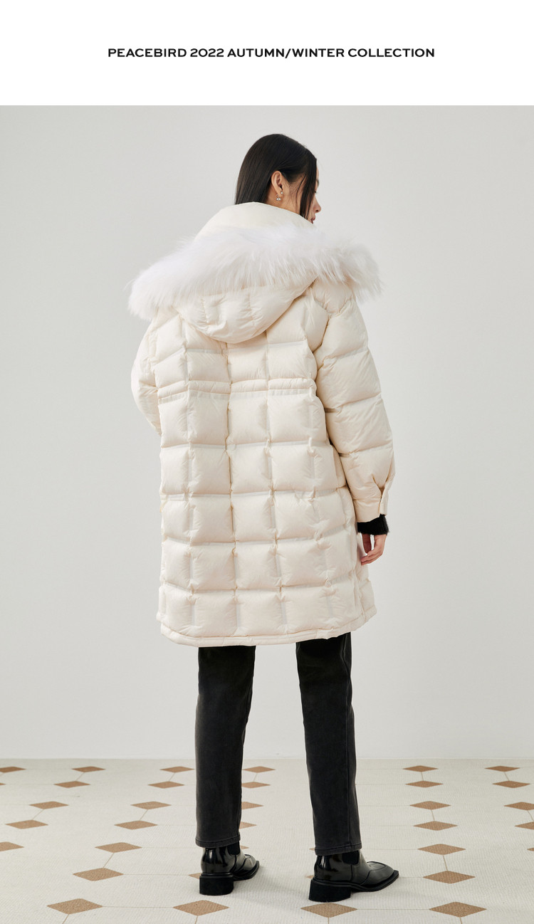 气质长款毛领羽绒服女冬季格型绗缝羽绒服女